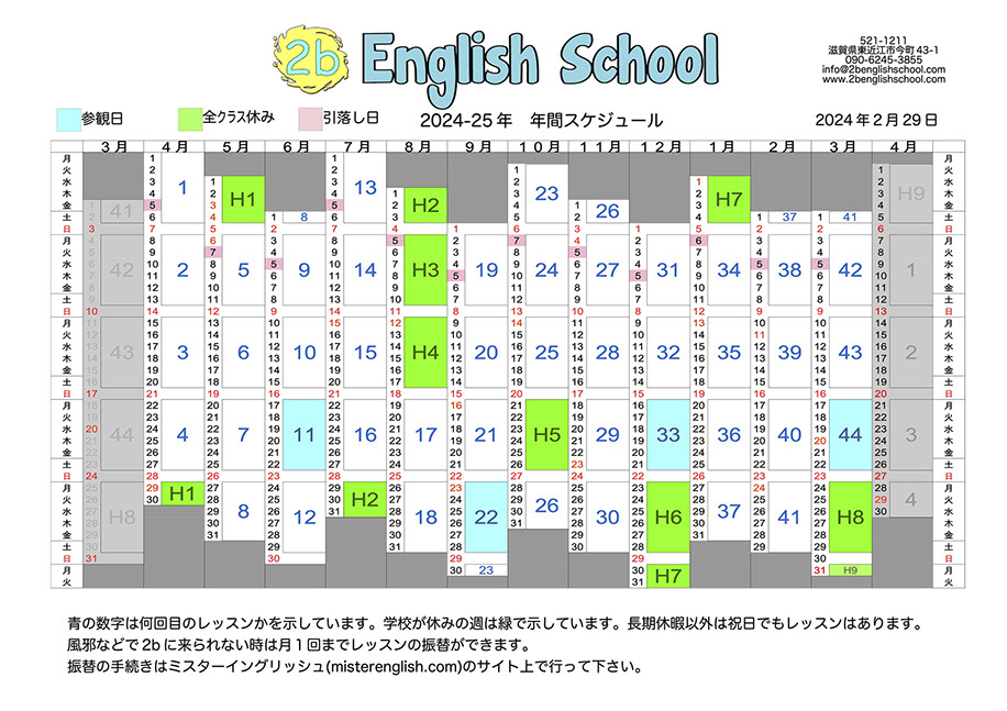 ※ 2b入学前に英語を習った経験がある場合はご相談ください。適切なコースをご案内します。