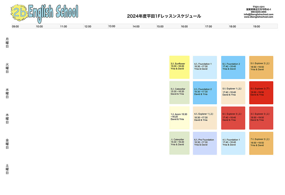 ・Foundationで、AcornやSunflowerからずっと習っている生徒さんと、Pre-Foundationからスタートした生徒さんではレッスン内容が異なることがあり、原則として同じクラスになることはありません。